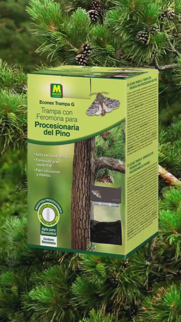 Incluye la feromona/atrayente y la trampa para colocar en los pinos.